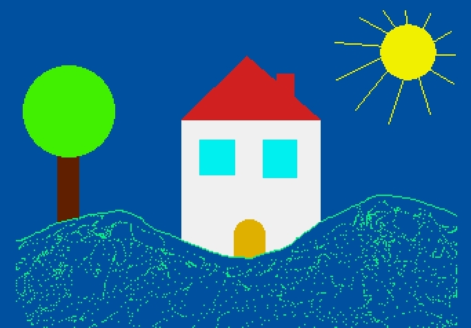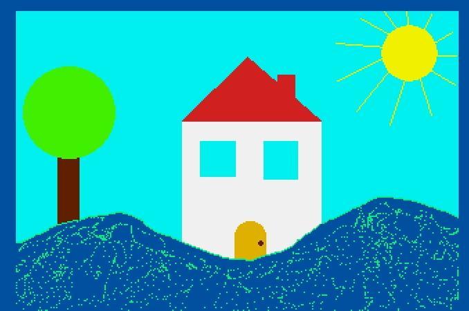 Ein paar weitere Rechtecke und Kreise sowie ein blauer Himmel.