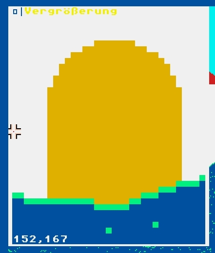 Ein Teil des Bildes wird vergrößert und pixelweise